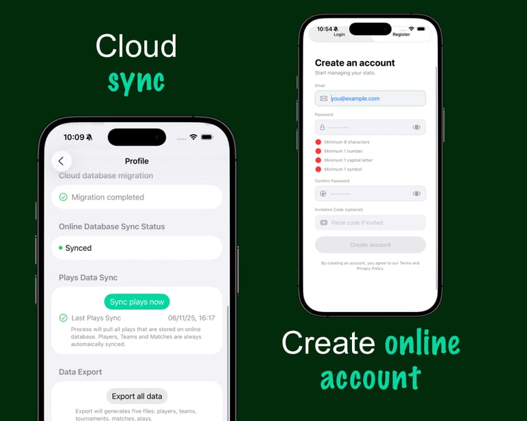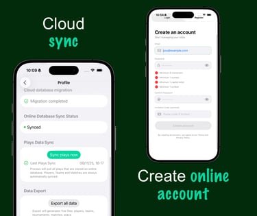 No more local limits â your data now lives in the cloud. Sync players, teams, and matches, and work together with your teammates in real time.